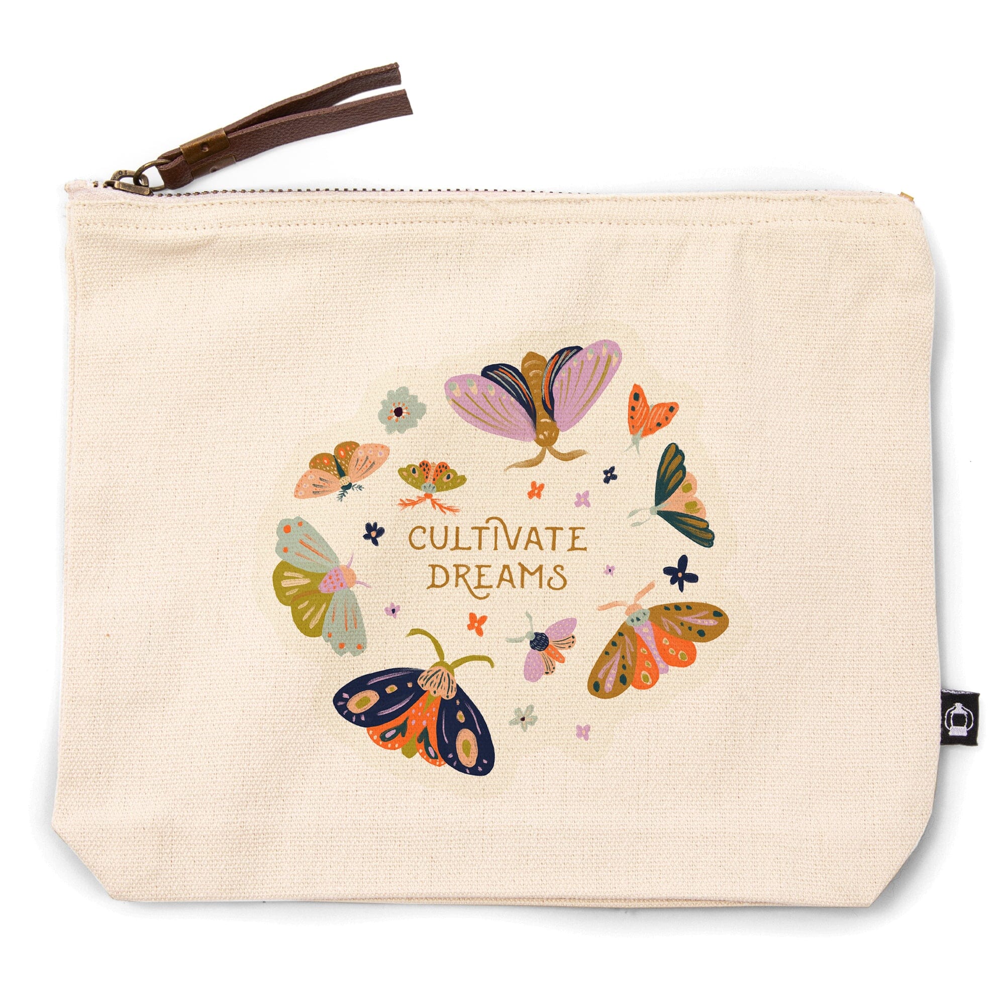 Nature's Beauty Series, Cultivate Dreams Moths,, Organic Cotton Zipper Pouch, Go Bag