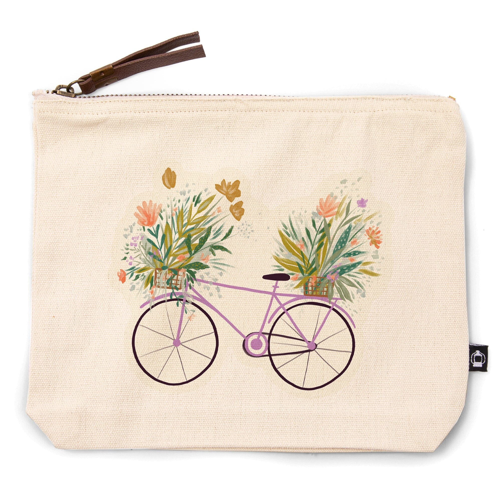 Nature's Beauty Series, Overflowing Flowers Bike,, Organic Cotton Zipper Pouch, Go Bag