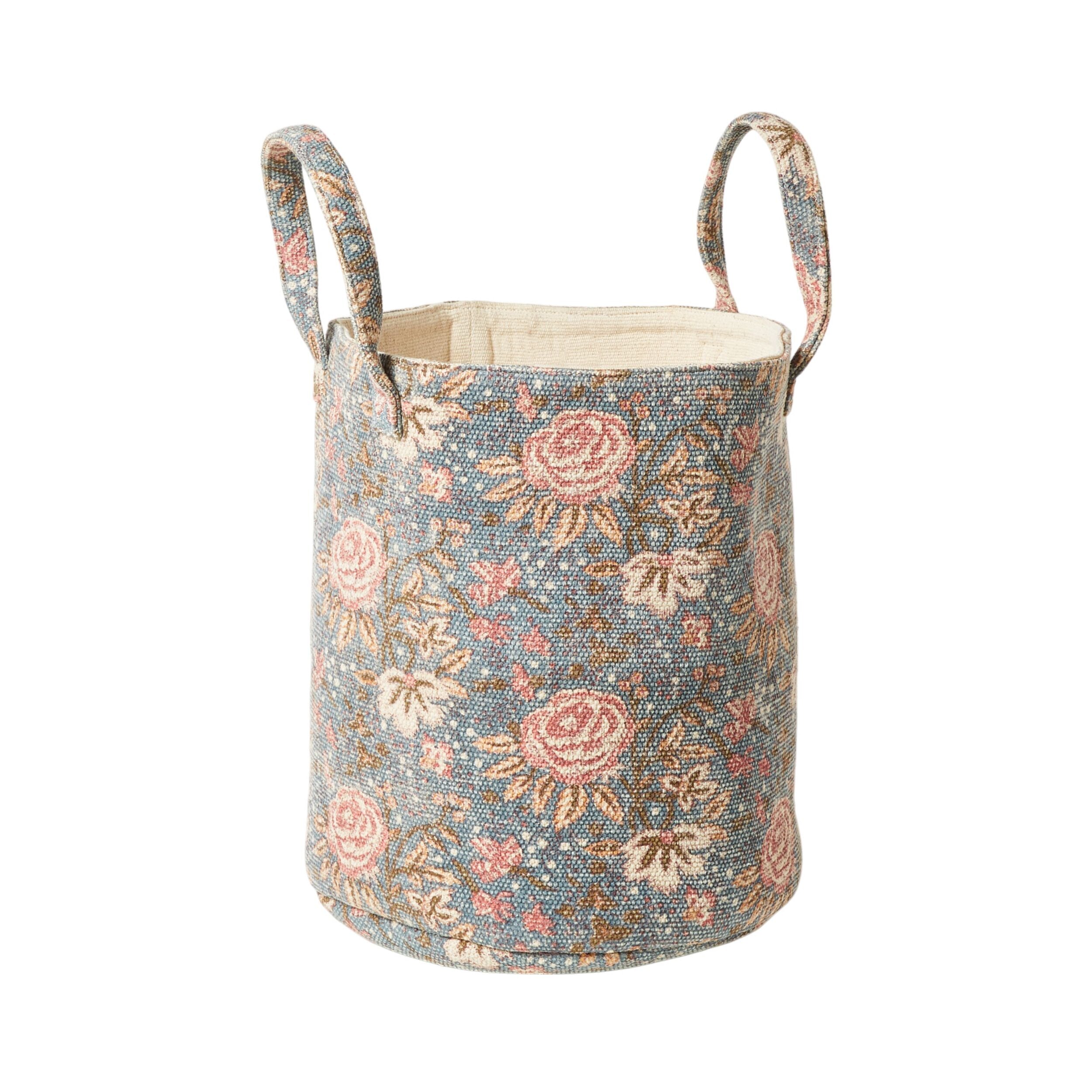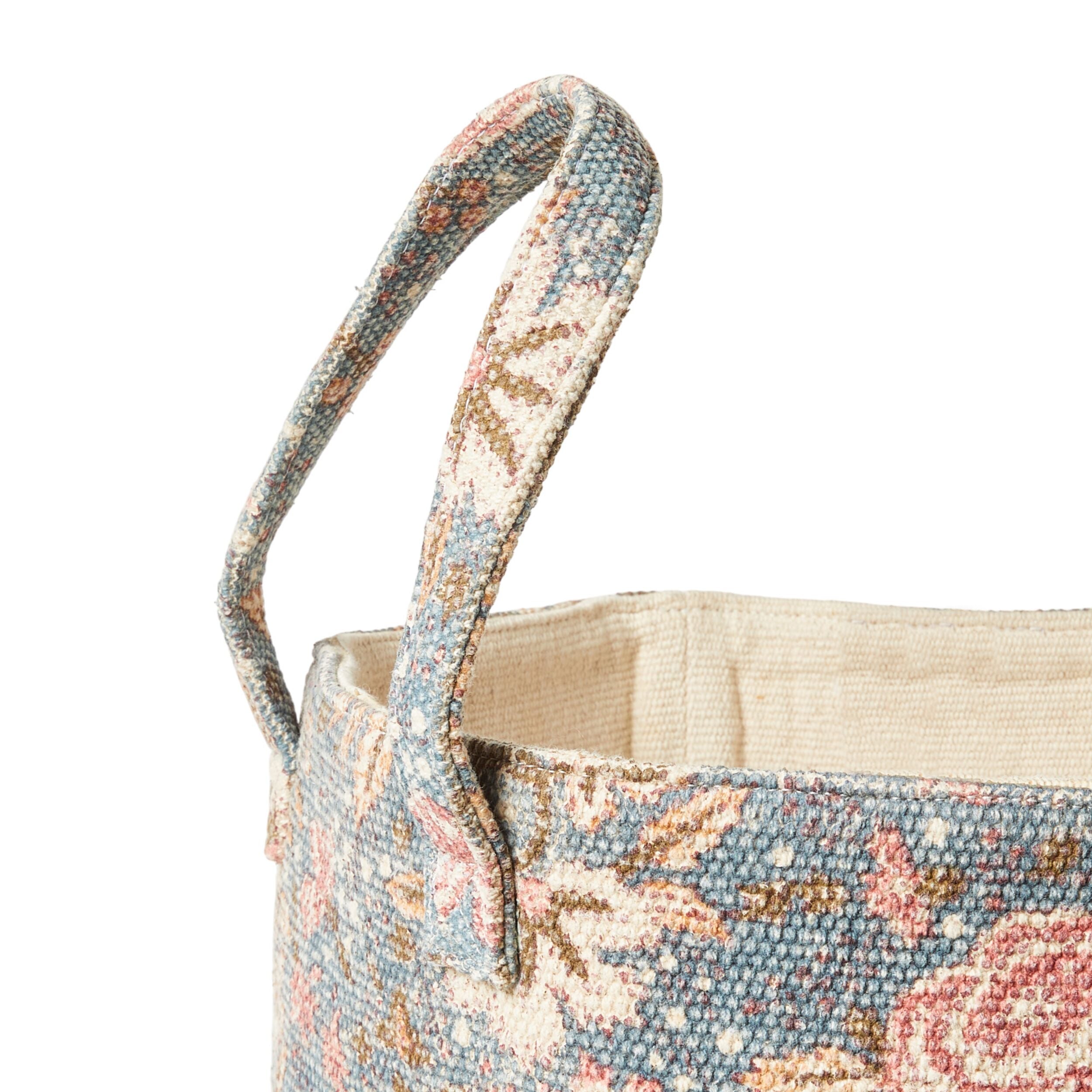 Fleurs Blue Cotton Dhurrie Basket Medium 41x35cm