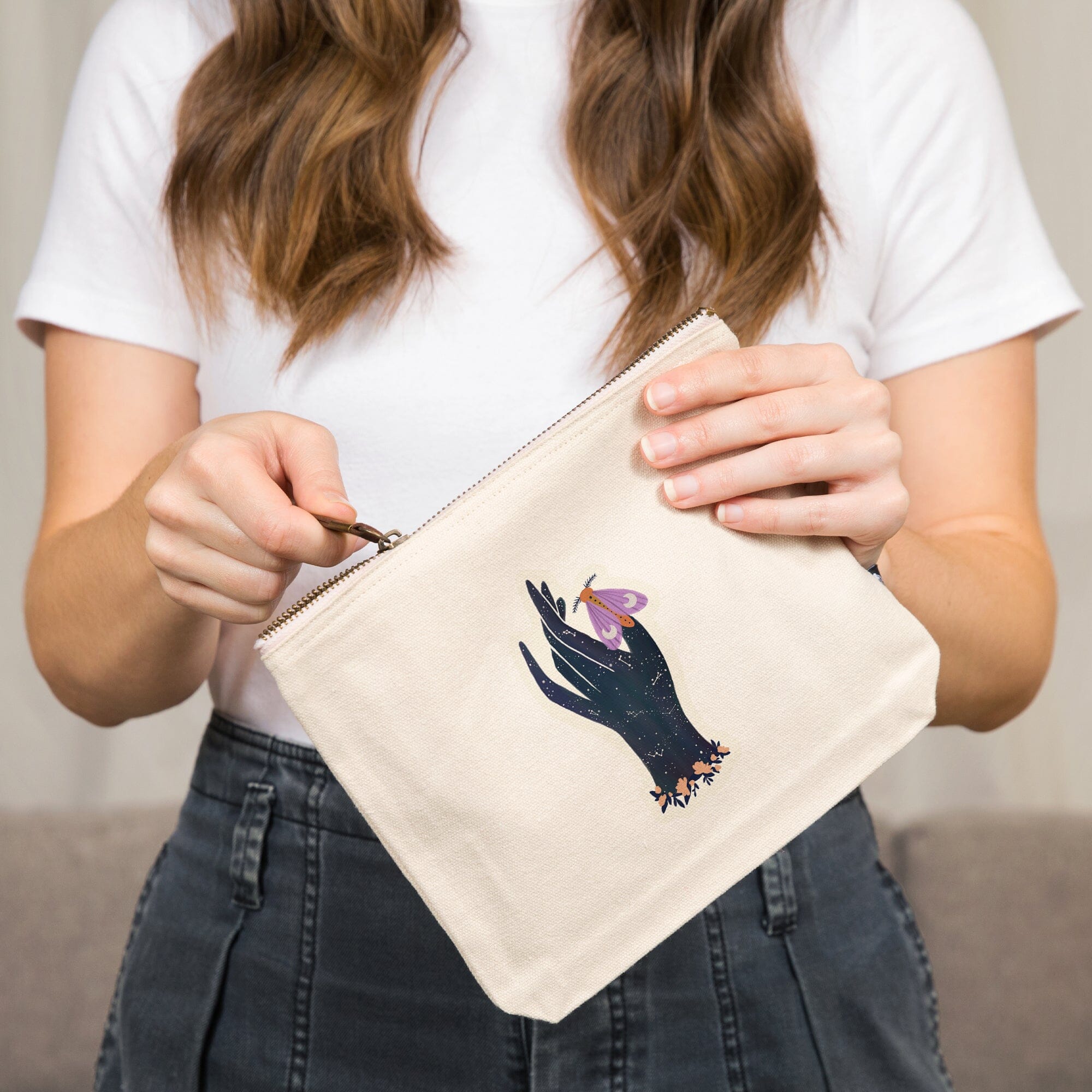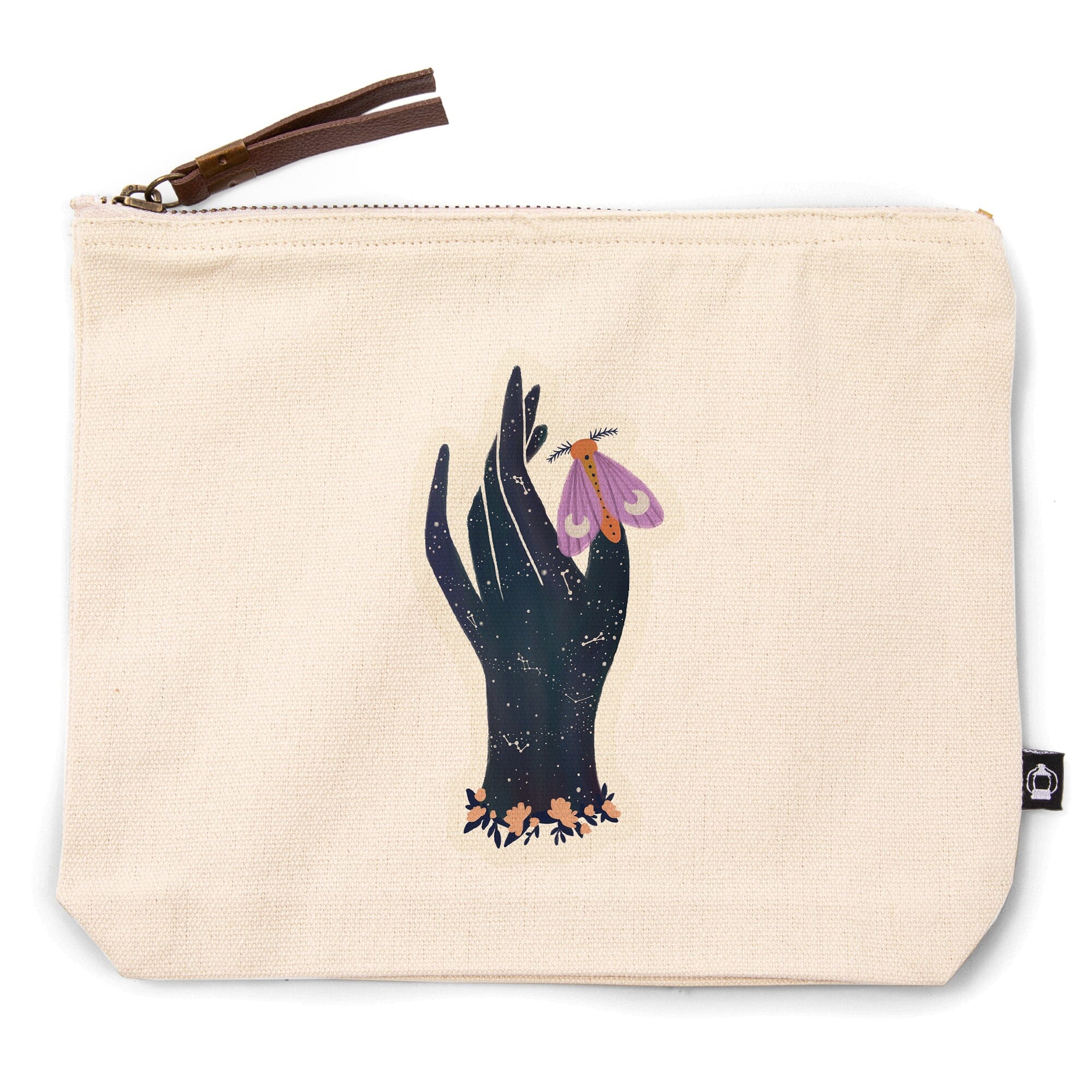 Nature's Beauty Series, Midnight Moth Hand,, Organic Cotton Zipper Pouch, Go Bag