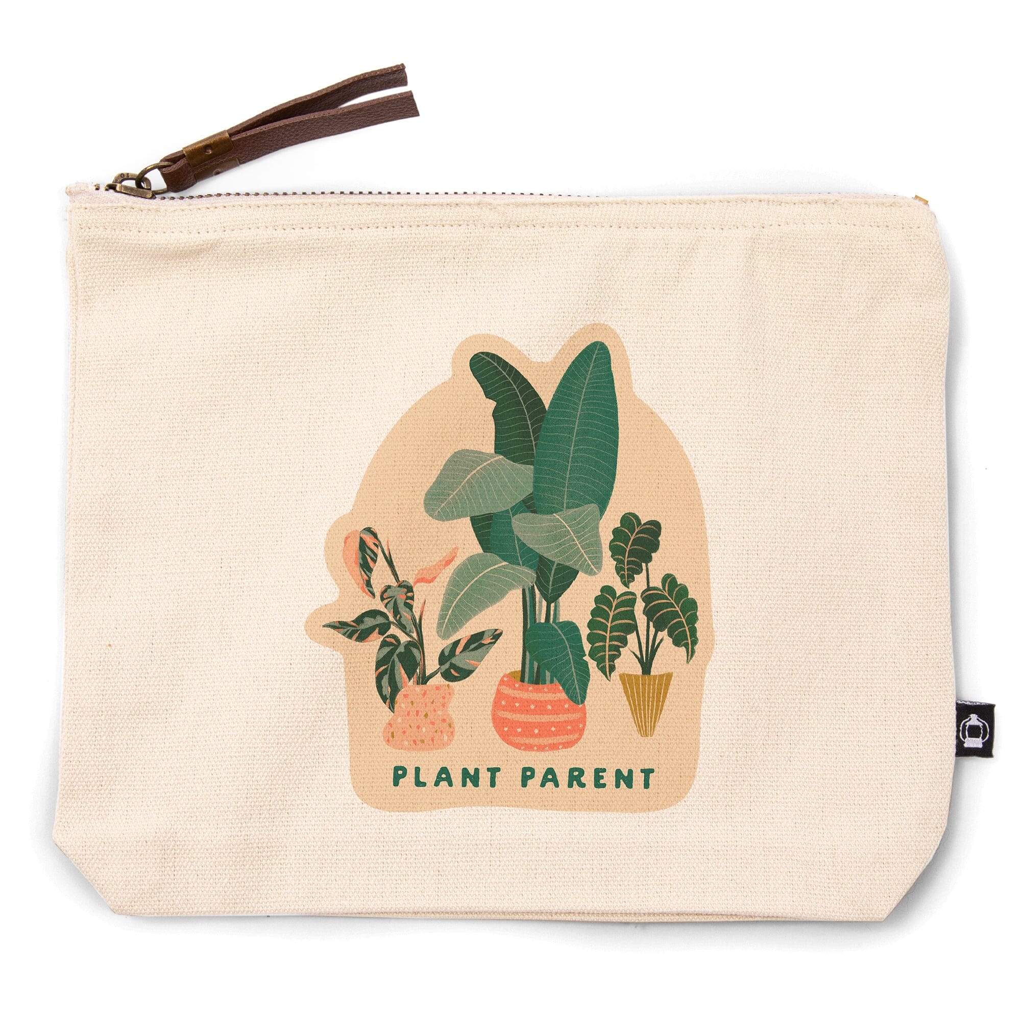 Nature's Beauty Series, Plant Parent Potted Houseplants,, Organic Cotton Zipper Pouch, Go Bag