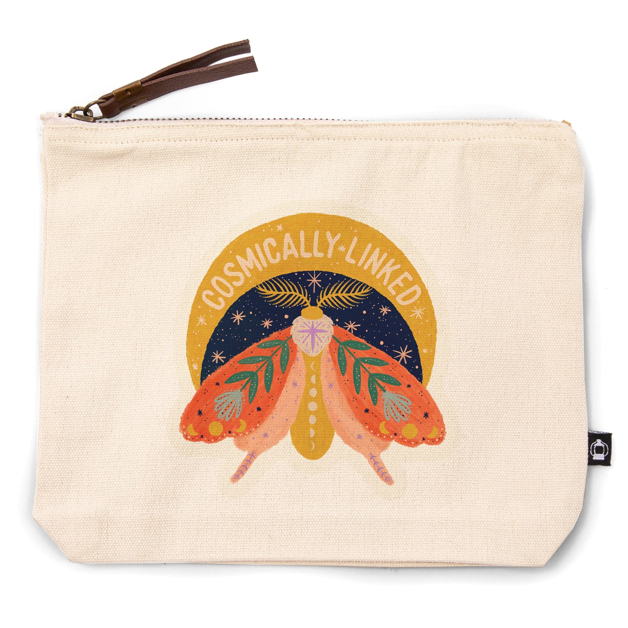Nature's Beauty Series, Cosmically Linked Moon Moth,, Organic Cotton Zipper Pouch, Go Bag