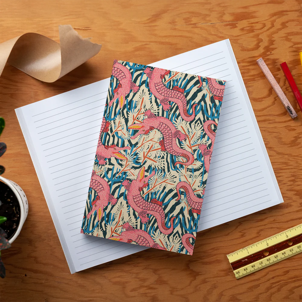 Discover the Cosmic Bazaar Classic Layflat Notebook with vibrant alligator pattern cover—perfect for note?taking, journaling, sketching, and daily planning.