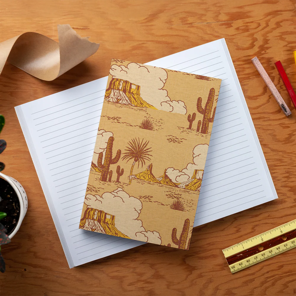 Celebrate rugged mesas and cacti scenes in the Mythos Desert Classic Layflat Notebook—desert inspired pattern, perfect for journaling life’s beauty & ideas.