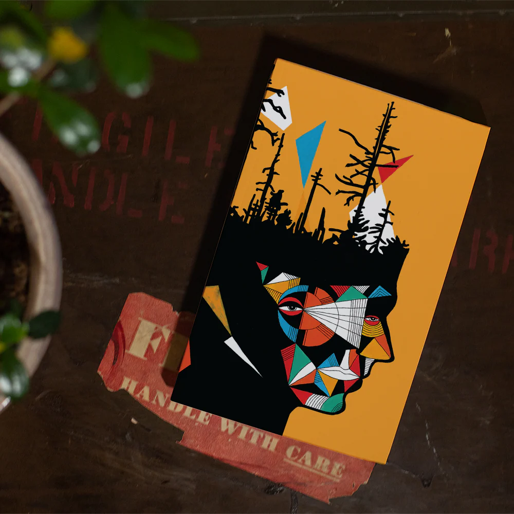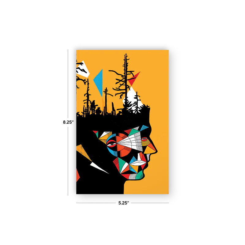 A vivid face, a forest of thoughts. Second Reflection blends bold geometry and quiet introspection—exploring the wild inside your mind through art.