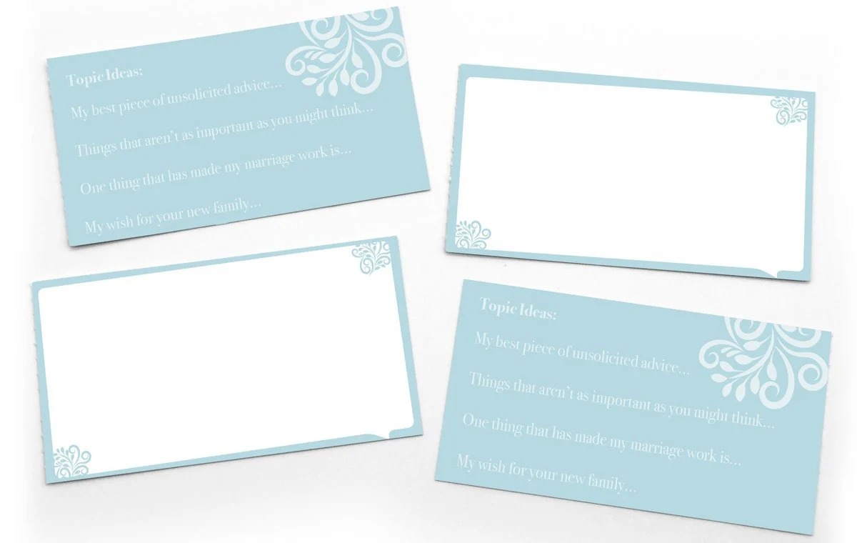 Our "Being Newlywed" Wedding Shower notecards can make a great activity at any wedding shower or engagement party! Use these booklets so guests can leave advice and words of wisdom for the engaged couple.