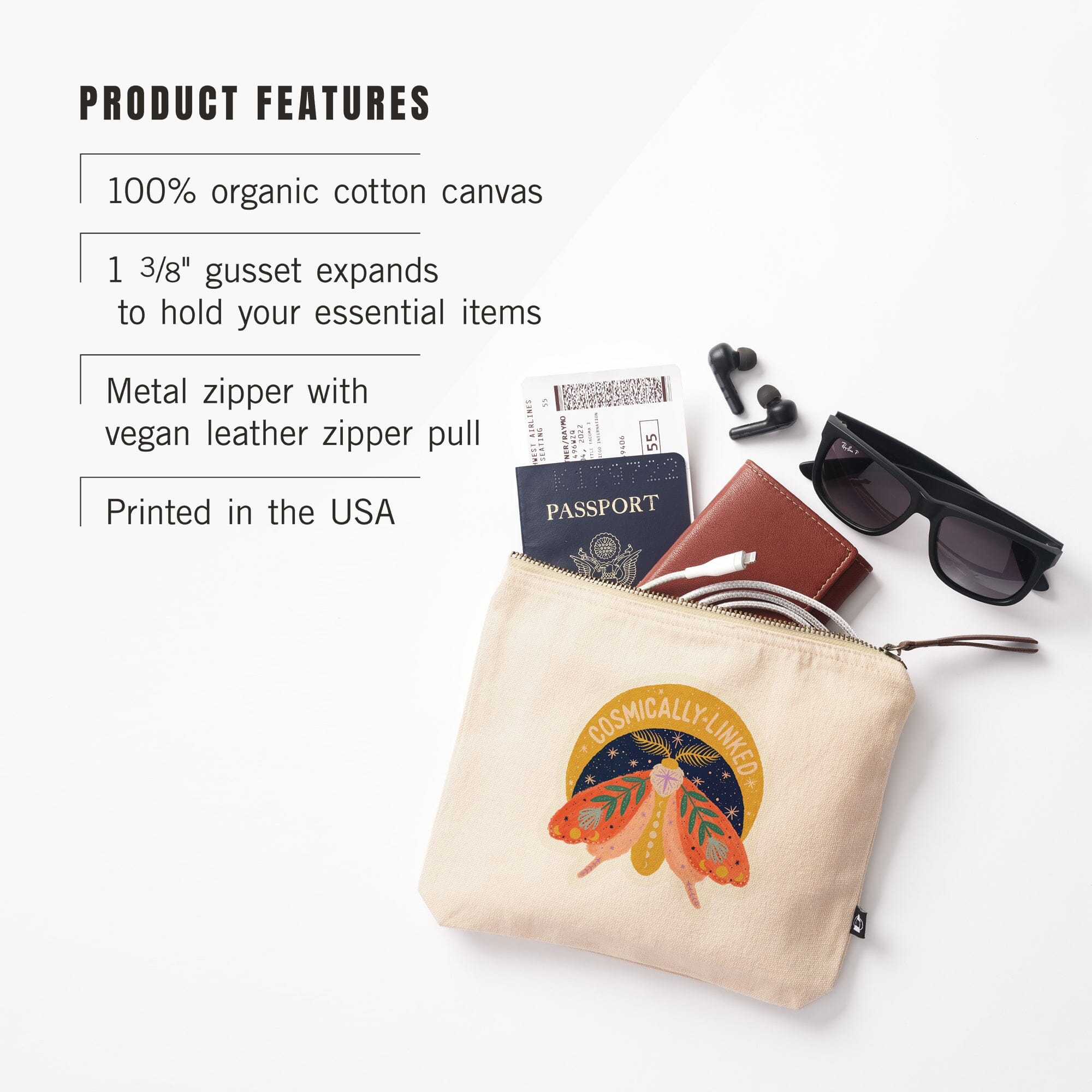 Nature's Beauty Series, Cosmically Linked Moon Moth,, Organic Cotton Zipper Pouch, Go Bag