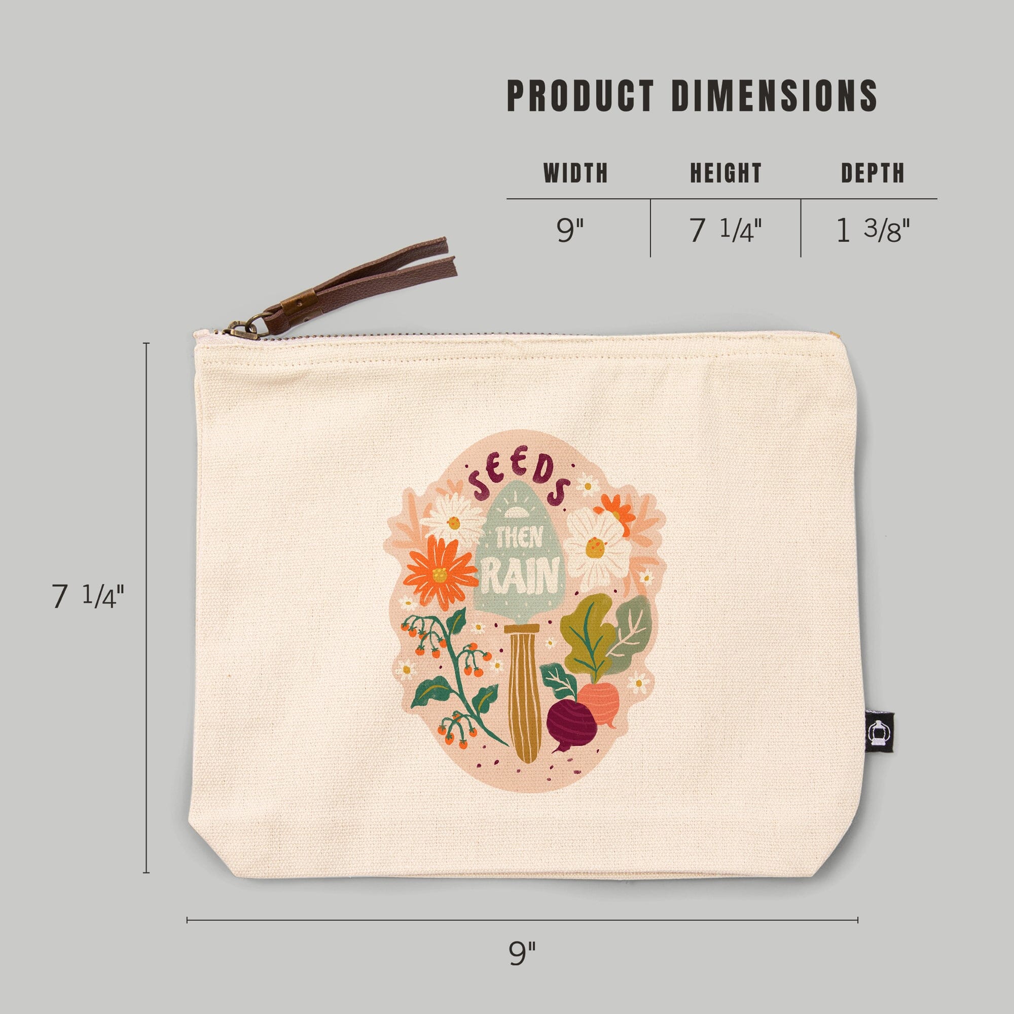 Nature's Beauty Series, Seeds Then Rain Shovel and Flowers,, Organic Cotton Zipper Pouch, Go Bag